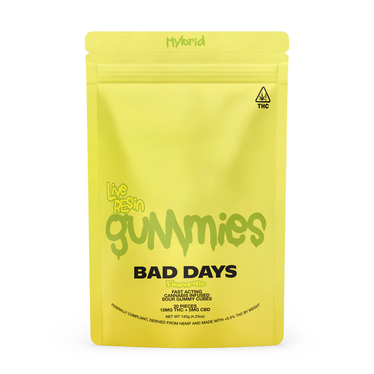 | Bad Days Gummies | Blue Razz Rntz, Clusters Strawberry 20Mg, Fruit Punch, Fruit Punch 10Mg, Grape Ape, Limoncello, Live Resin Blue Razz Rntz 20Mg, Live Resin Grape Ape 20Mg, Live Resin Limoncello 20Mg, Live Resin Peach Diesel 20Mg, Peach Diesel, Strawberry |
