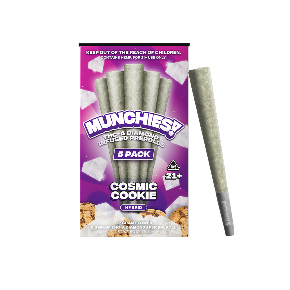 The Munchies 1G THCA Diamond Pre-Rolls (5 Pack) deliver a smooth, flavorful smoking experience in a convenient multi-pack format. Rolled with top-shelf flower and infused with THCA diamonds, these pre-rolls are crafted for a stronger spark, a richer terpene profile, and an easy grab-and-go session whenever the moment calls for it.