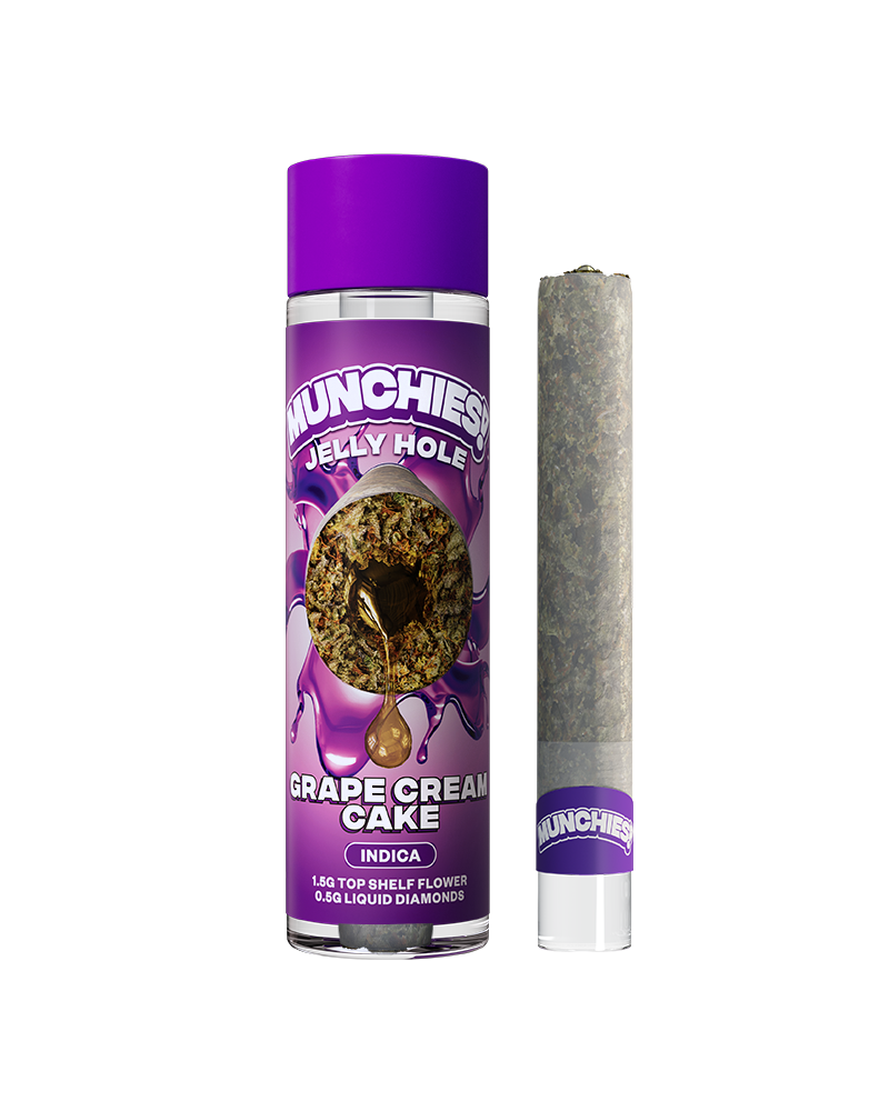 The Munchies 2G THCA Diamond Jelly Holes deliver a heavy-hitting infused pre-roll experience with premium flower and a potent THCA liquid diamond core. Each Jelly Hole combines 1.5g of flower with a 0.5g THCA core for a bold, flavorful smoke designed to burn slow and hit strong. Finished with a glass tip for smoother, cooler pulls, this is a top-shelf option for customers looking for a more elevated pre-roll experience.